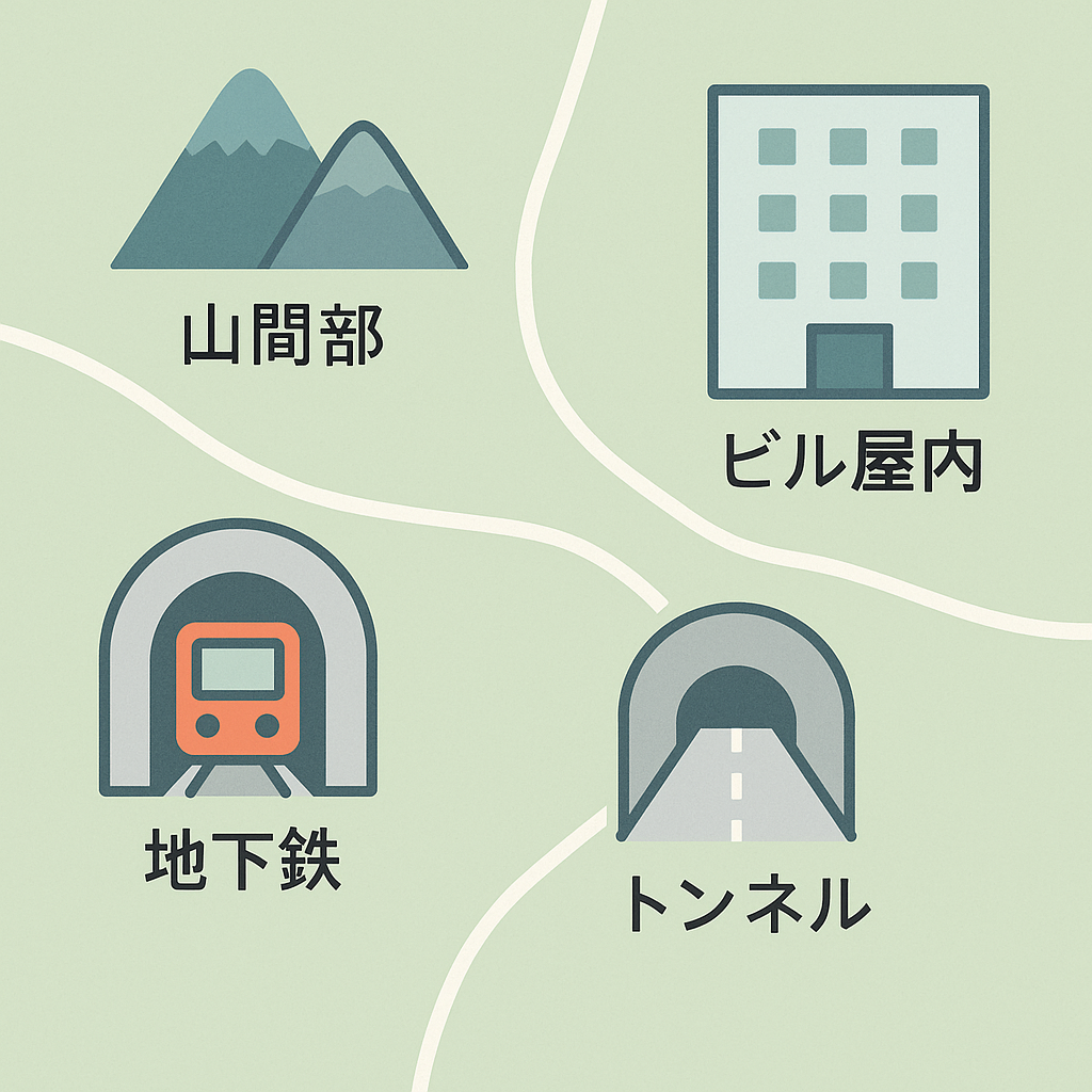 - 山間部やトンネル内